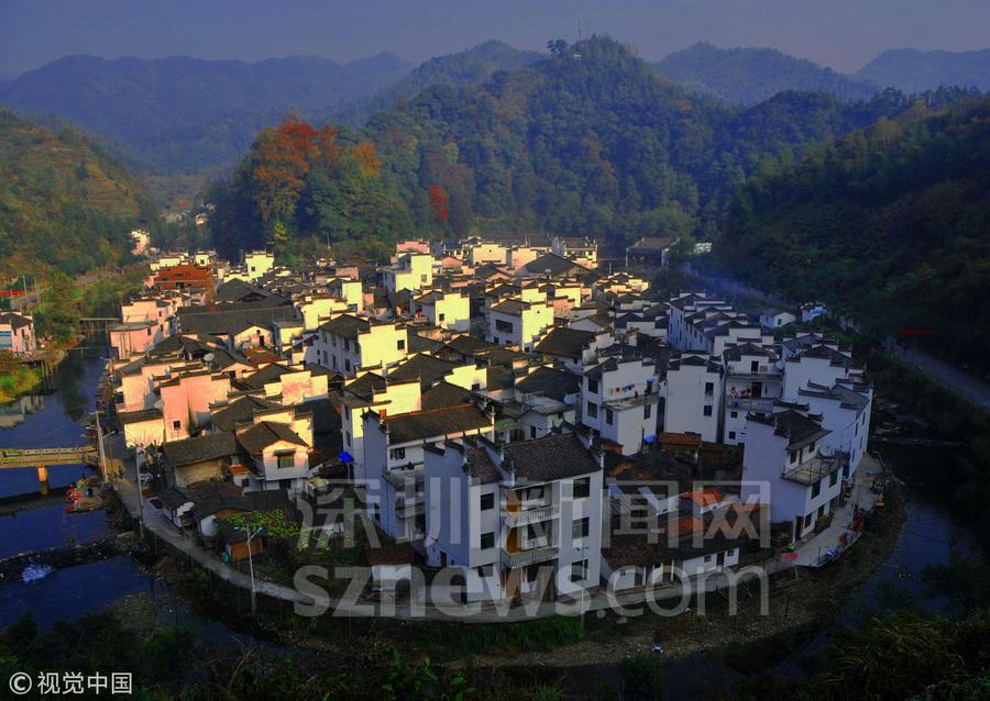 深圳新聞網(wǎng)訊 四面青山環(huán)繞,小河成大半圓形圍繞一周,眼前這個(gè)山環(huán)水繞的小村莊被稱為“中國(guó)最圓的村莊”,沿山間小路建設(shè)的臺(tái)階而上,站在一處觀景臺(tái)往下看,這個(gè)村子的形狀在山水襯托下,宛如一個(gè)圓形的島嶼。