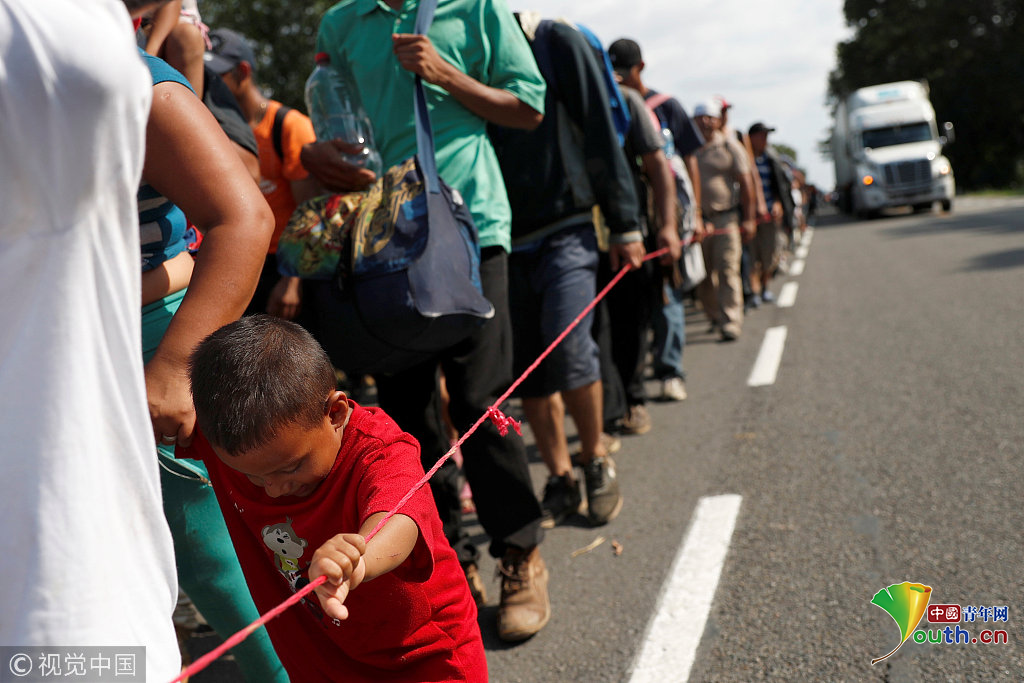 當(dāng)?shù)貢r(shí)間2018年11月2日,墨西哥連接Ciudad Hidalgo與塔帕丘拉的公路上,中美洲移民繼續(xù)向美國挺進(jìn)。圖片作者:CARLOS GARCIA RAWLINS