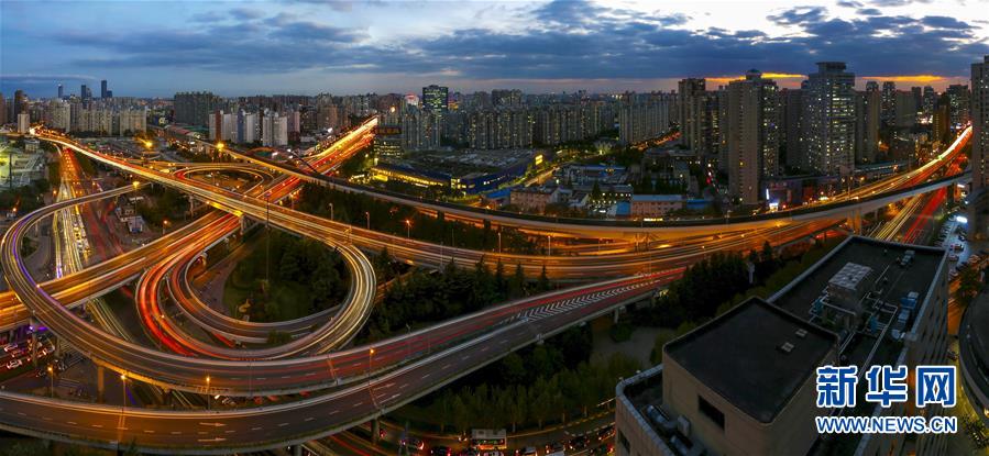 11月1日拍攝的上海夜景(全景拼接照片)。 首屆中國(guó)國(guó)際進(jìn)口博覽會(huì)即將在上海開幕。美麗的上海張開懷抱,迎接八方來(lái)客。 新華社記者 殷剛 攝