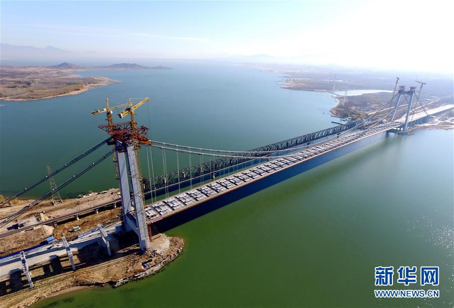 當日,河北省懷來縣官廳水庫公路大橋主橋成功合龍。據(jù)介紹,該橋采用雙向四車道城市主干路標準建設(shè),設(shè)計為雙塔單跨懸索橋,全長1988米, 橋主塔高107.8米,橋?qū)?3.6米,主橋720米一跨過湖。