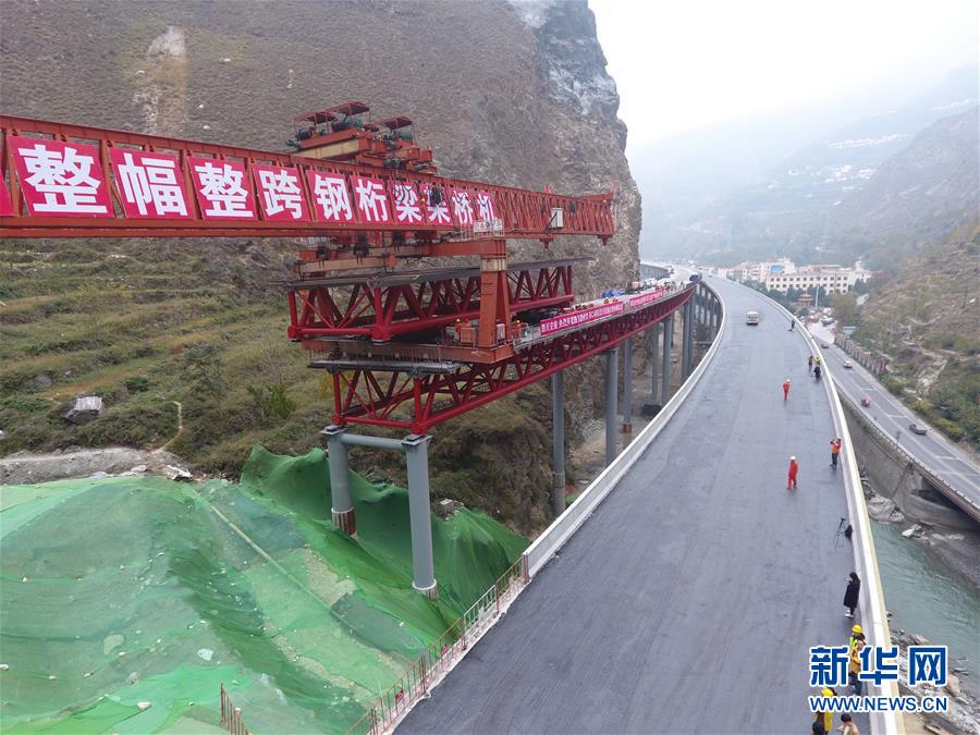 11月3日,工人在克枯大橋合龍現(xiàn)場工作。 當日,位于四川省阿壩藏族羌族自治州的汶(川)馬(爾康)高速的控制性工程克枯大橋合龍。 新華社記者 劉坤 攝
