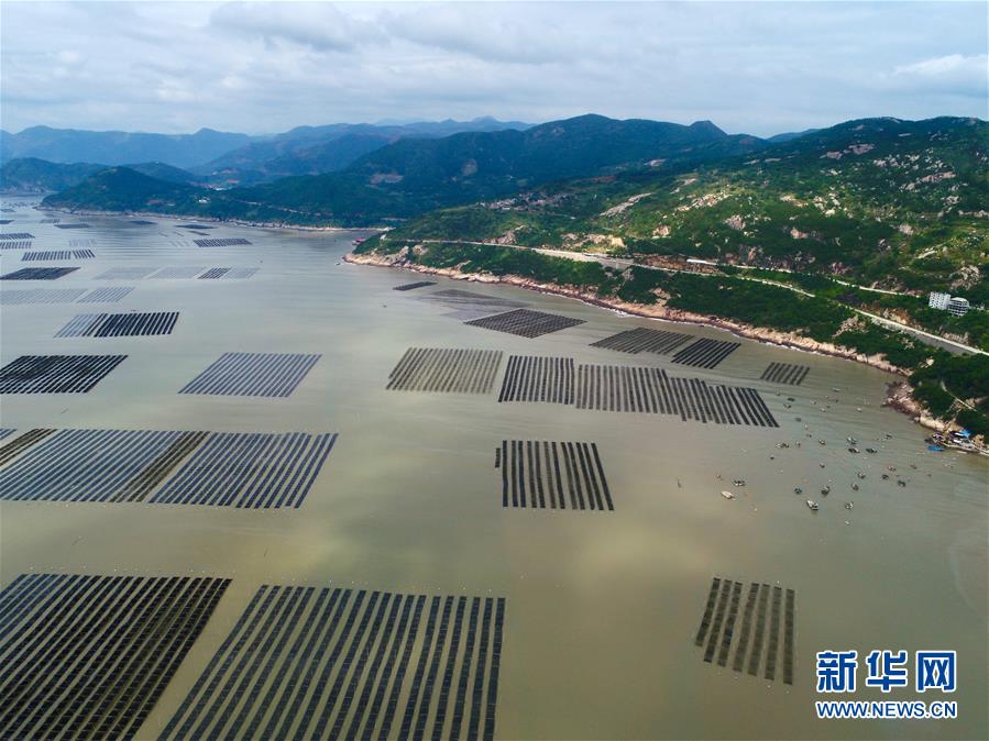 這是11月4日無(wú)人機(jī)拍攝的霞浦縣三沙鎮(zhèn)的紫菜種植區(qū)。 近日,福建省霞浦縣沿海6萬(wàn)畝紫菜迎來(lái)收獲季節(jié),漁民們出海收獲紫菜,海上田園一派繁忙豐收景象。   新華社記者 姜克紅 攝