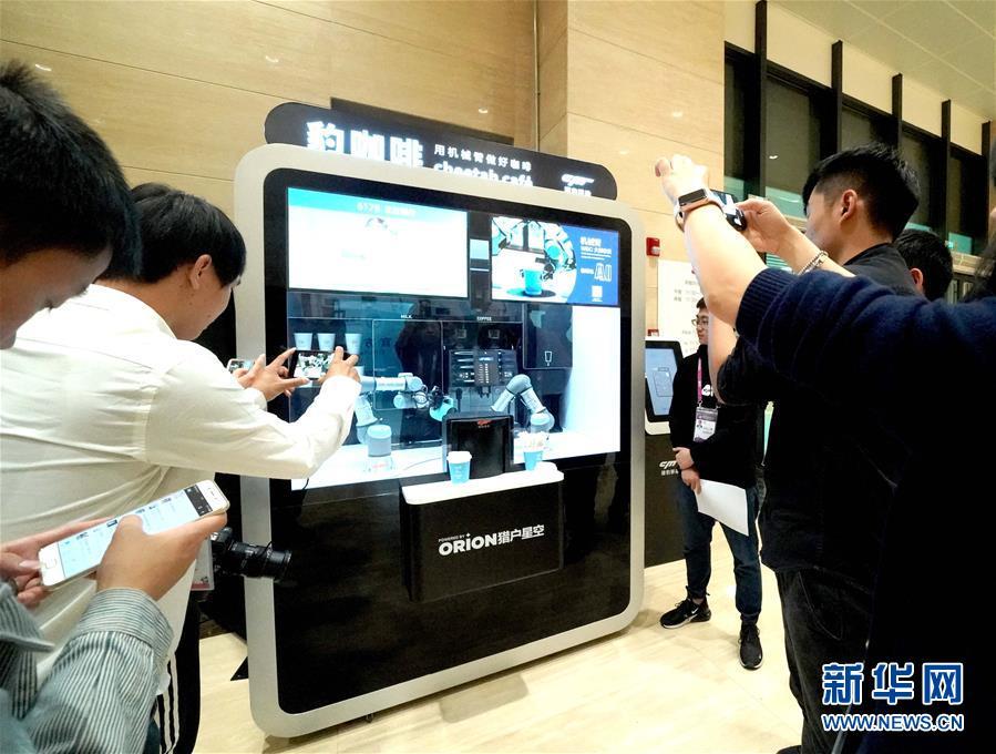 11月4日,媒體記者在首屆中國(guó)國(guó)際進(jìn)口博覽會(huì)新聞中心拍攝無(wú)人咖啡亭。 新華社記者陳建力攝