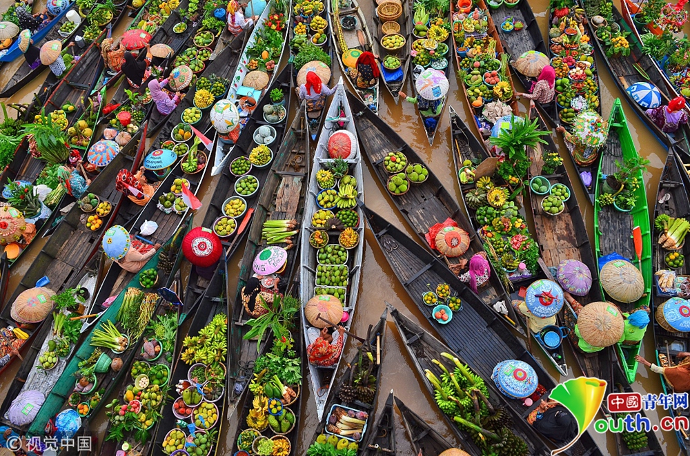 2018年11月5日訊(具體拍攝時(shí)間不詳),印度尼西亞班加爾地區(qū),專業(yè)攝影師Saipullah拍攝的洛克班坦(Lok Baintan)水上集市。 圖片來源:視覺中國