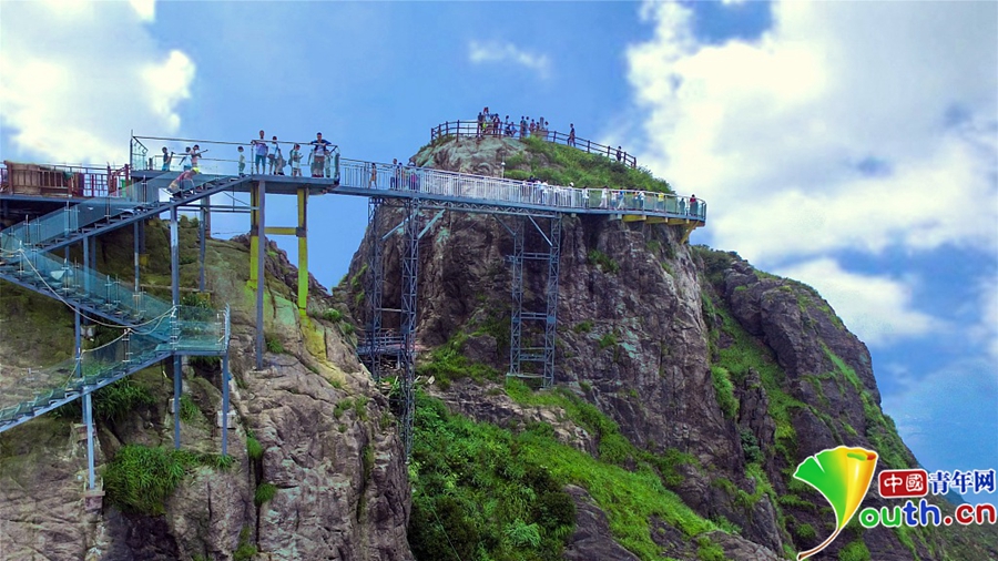 經(jīng)過一年的建設,位于素有“嶺南第一險峰”與“南粵小華山”之稱的廣東清遠連山金子山,有一條玻璃天梯建成。下個月10日,玻璃天梯將正式對游客開放。