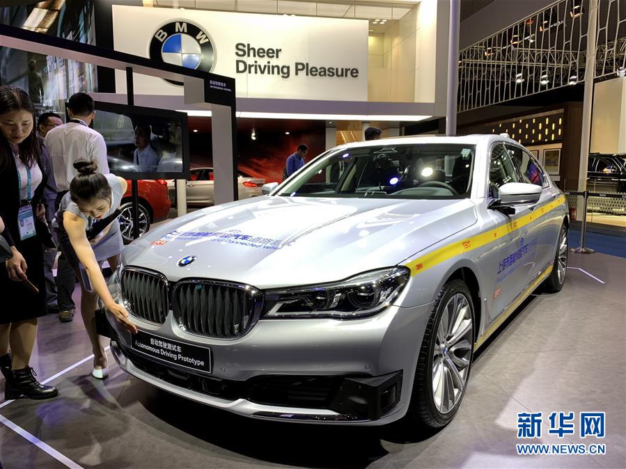 這是11月7日在汽車展區(qū)拍攝的配備L4級自動駕駛技術的寶馬7系測試車。新華社記者 牛曉雷 攝