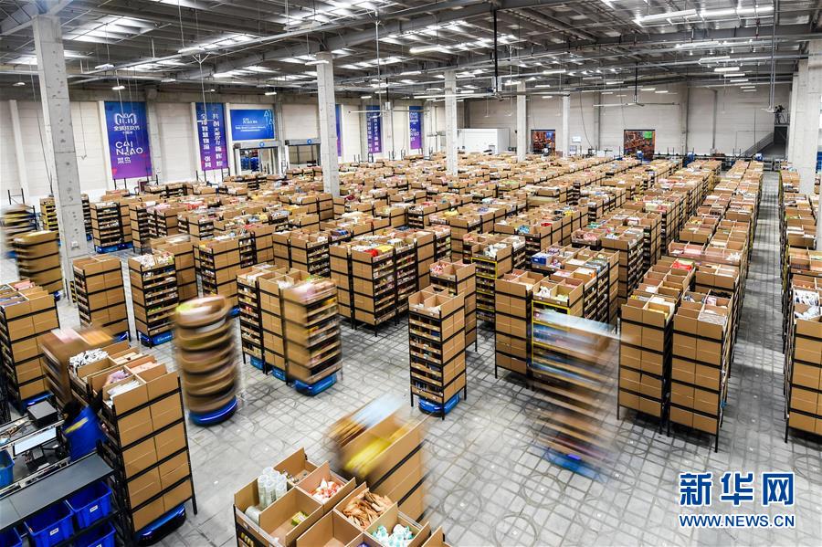 11月8日,智能搬運機器人在倉庫內進行搬運作業(yè)。