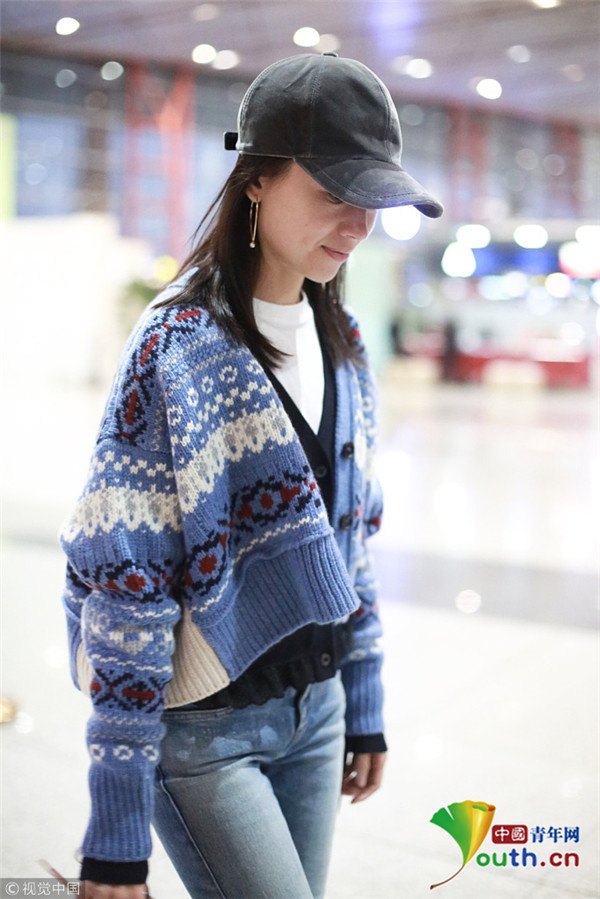 董潔素面朝天現(xiàn)身機場