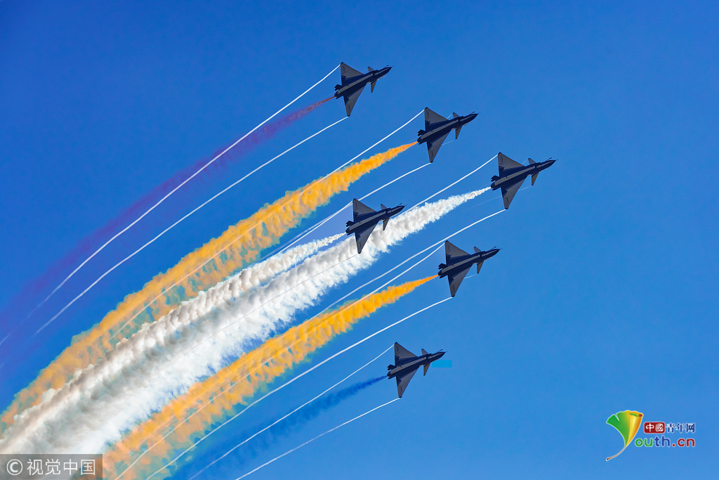 2018年11月6日,第十二屆中國國際航空航天博覽會在珠海拉開帷幕。八一飛行表演隊(duì)的殲-10率先上陣,為觀眾獻(xiàn)上精彩的飛行表演。視覺中國