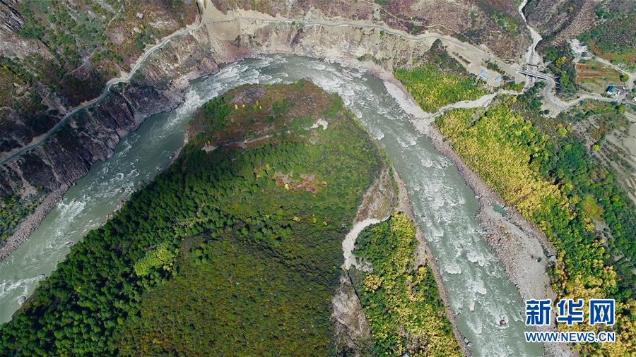 這是10月21日在西藏米林縣派鎮(zhèn)達林村拍攝的雅魯藏布江(無人機拍攝)。