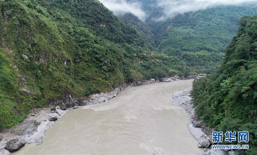 洪峰過境后的西藏雅魯藏布江墨脫段局部畫面(10月20日無人機(jī)拍攝)。 新華社記者劉東君攝