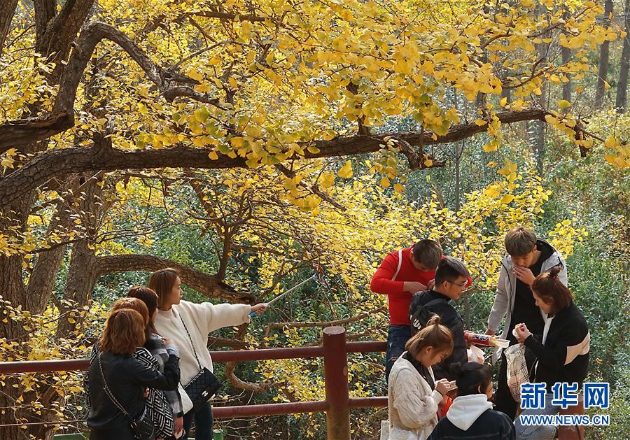 11月1日,游客在河南省嵩縣白河鄉(xiāng)下寺村古銀杏樹(shù)下拍照賞景。 深秋時(shí)節(jié),河南省嵩縣白河鄉(xiāng)下寺村的古銀杏林為小山村披上了“金甲”。漫天黃葉,遍地金色,一幢幢民居掩映在色彩斑斕的世界里,美不勝收,吸引了眾多游客賞景拍照。 新華社記者 李安 攝