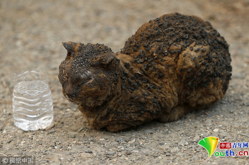 這場美國史上最嚴(yán)重山火導(dǎo)致7700多所房屋被毀,5萬多人流離失所。一只被燒傷的貓在等待動物管理局到來救助。