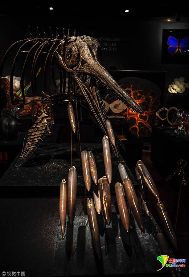 當(dāng)?shù)貢r(shí)間2018年11月19日,法國(guó)巴黎,在展出中的1.8億年前侏羅紀(jì)時(shí)期的恐龍骨架,將于11月20日在Drouot拍賣(mài)行拍賣(mài)。