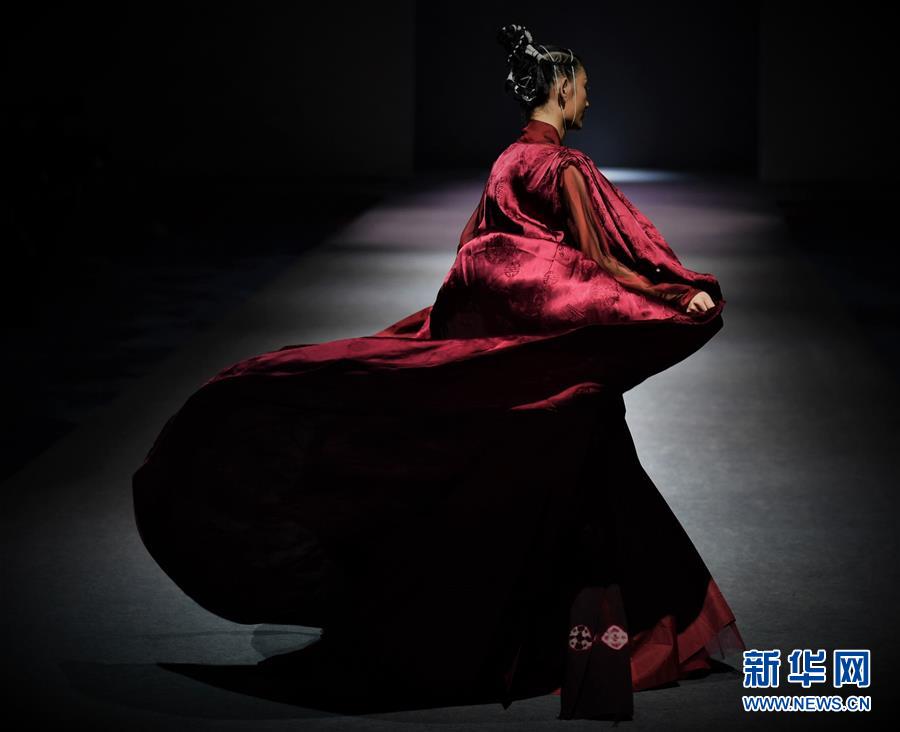 模特在AJ-NAMO藏裝秀上展示藏族設(shè)計師阿佳娜姆設(shè)計的時裝(11月18日攝)。