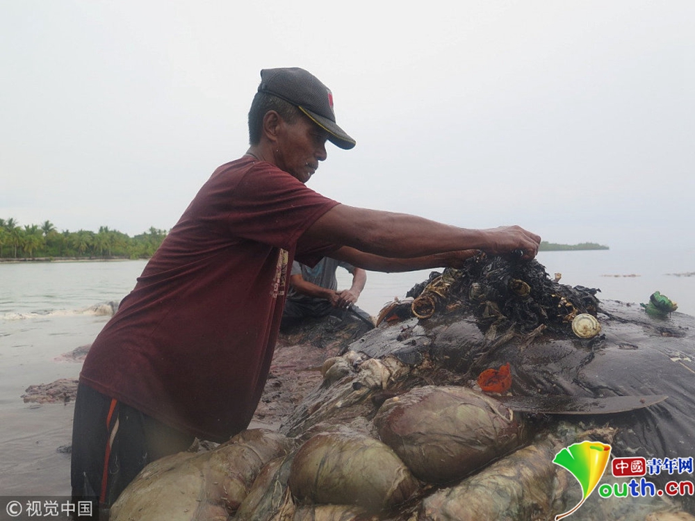 鯨魚(yú)擱淺印尼海岸 肚子里滿是塑料垃 ...