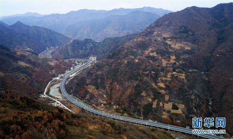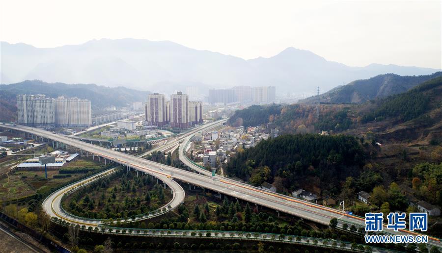 11月20日拍攝的水陽高速公路與福銀高速公路相接的樞紐互通式立交(無人機拍攝)。 近日,記者從陜西省交通建設集團公司了解到,陜西柞水至山陽高速公路已全線貫通即將通車。據(jù)介紹,(柞)水(山)陽高速公路全長78.8公里,開通后將實現(xiàn)包茂高速、福銀高速在陜南商洛地區(qū)的連接,開辟出秦嶺南麓的一條橫向高速大通道,對完善陜西高速公路路網(wǎng)結(jié)構(gòu)、促進陜南區(qū)域經(jīng)濟發(fā)展、加快山區(qū)群眾脫貧致富具有重要意義。 新華社記者劉瀟攝