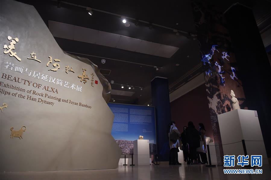 當(dāng)日,“美在阿拉善——巖畫與居延漢簡藝術(shù)展”在北京中國美術(shù)館開幕,共展出巖畫實(shí)物、雕塑、拓片、漢簡等共計(jì)100多件。 新華社記者 魯鵬 攝