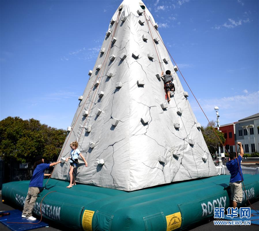 8月11日,在美國(guó)舊金山灣區(qū),人們?cè)凇澳槙?shū)節(jié)”的游戲區(qū)游玩。當(dāng)日,舊金山灣區(qū)臉書(shū)園區(qū)舉行“臉書(shū)節(jié)”,人們?cè)诨顒?dòng)中欣賞文藝表演,品嘗美食,乘坐游樂(lè)設(shè)施等,活動(dòng)收入將捐給慈善團(tuán)體。新華社記者吳曉凌攝