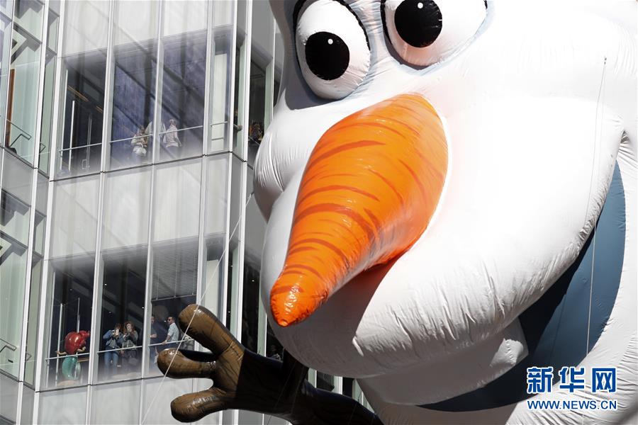 當日,第92屆梅西感恩節(jié)大游行在紐約舉行,各式各樣的玩偶氣球、花車隊伍在曼哈頓的摩天大樓間穿行,吸引數(shù)百萬民眾前來觀看。梅西感恩節(jié)大游行始于1924年,是全美規(guī)模最大的感恩節(jié)游行。