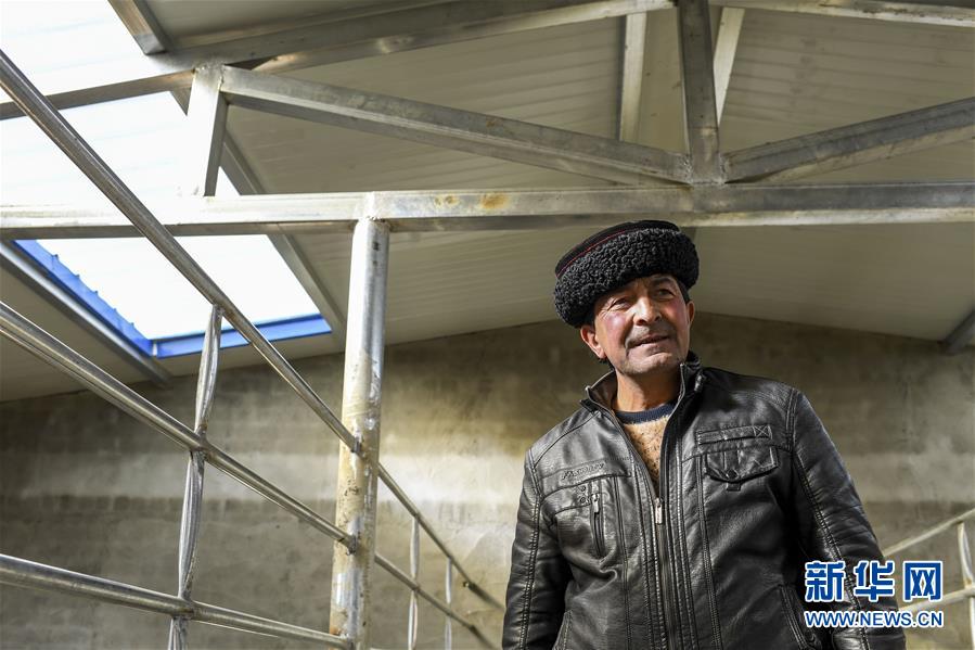 在塔什庫爾干塔吉克自治縣塔提庫力易地扶貧搬遷安置點(diǎn),都熱·加爾曼在新修的標(biāo)準(zhǔn)化棚圈內(nèi)參觀(11月18日攝)。新華社記者胡虎虎攝