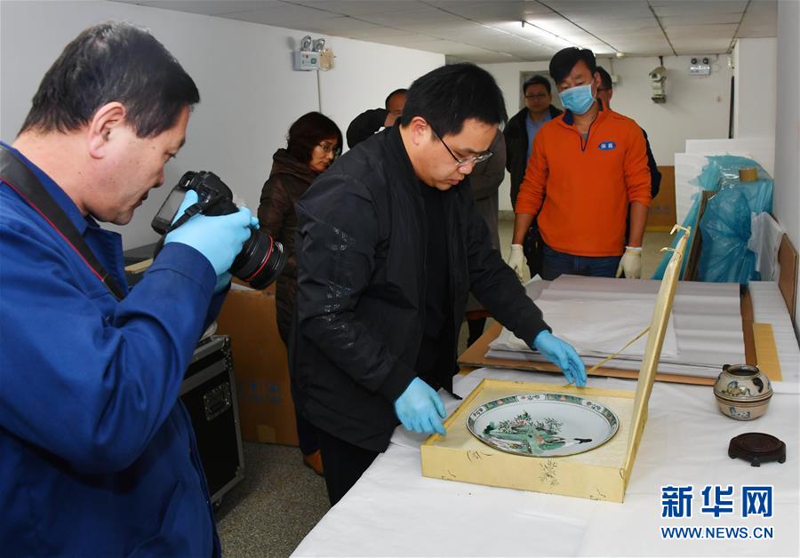 在孔府文物檔案館,工作人員對即將包裝運輸?shù)奈奈镞M行拍照登記(11月15日攝)。 11月26日,耗時5年建成的孔子博物館在孔子故里山東曲阜開館試運行,首批2000多件文物搬出孔府文物檔案館,入住孔子博物館,今后將有69萬多件孔府文物逐批“喬遷新居”。 新華社記者 朱崢 攝