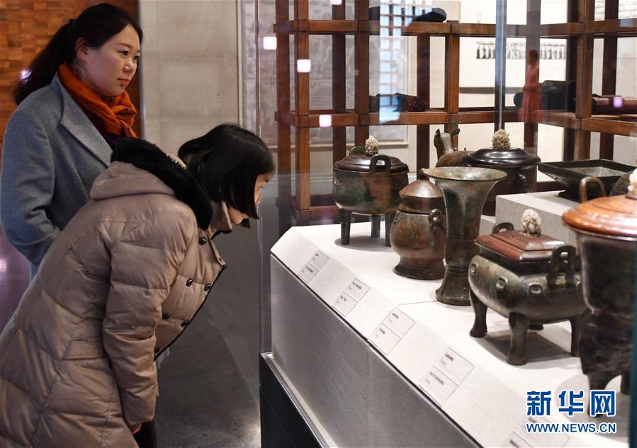11月26日,參觀者在觀看孔子博物館內(nèi)的文物。 當(dāng)日,耗時5年建成的孔子博物館在孔子故里山東曲阜開館試運行,首批2000多件文物搬出孔府文物檔案館,入住孔子博物館,今后將有69萬多件孔府文物逐批“喬遷新居”。 新華社記者 朱崢 攝