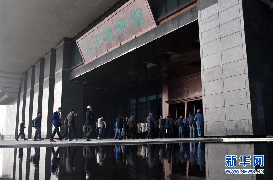 11月26日,參觀者在孔子博物館內(nèi)參觀。 當(dāng)日,耗時5年建成的孔子博物館在孔子故里山東曲阜開館試運行,首批2000多件文物搬出孔府文物檔案館,入住孔子博物館,今后將有69萬多件孔府文物逐批“喬遷新居”。 新華社記者 朱崢 攝