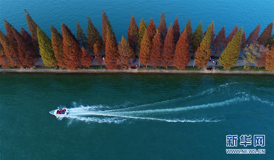 初冬時(shí)節(jié),在湖南長(zhǎng)沙的湖南烈士公園年嘉湖畔,色彩斑斕的樹(shù)葉與一湖碧水相映成趣,構(gòu)成一幅美麗的畫(huà)卷。 新華社記者 李尕?cái)z