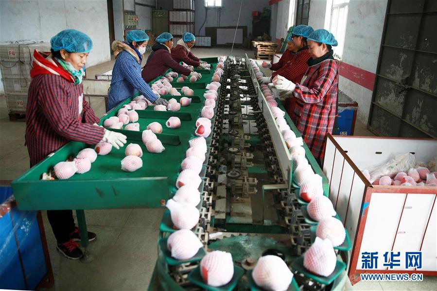 11月26日,河北省內(nèi)丘縣一扶貧龍頭企業(yè)的員工在分揀蘋果。 近年來,河北省內(nèi)丘縣不斷推進(jìn)產(chǎn)業(yè)扶貧,探索“龍頭企業(yè)+貧困戶”利益鏈接機(jī)制,通過扶貧資金入股、進(jìn)廠打工等方式,提高貧困戶的產(chǎn)業(yè)參與度和受益度,帶動(dòng)1300余戶貧困戶實(shí)現(xiàn)增收。 新華社記者 牟宇 攝