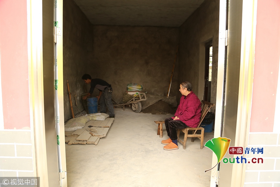 由于有王顯強(qiáng)的精心照顧,田井貴雖然癱瘓不能走路,但從未生過大病,連感冒也很少有。今年8月,因為工廠放假,王顯強(qiáng)背著母親回到老家。但是老家的房子因為常年無人居住,已經(jīng)倒塌。王顯強(qiáng)母子暫時借住在叔叔王正章家里。村里的鄰居們很關(guān)心王顯強(qiáng)母子,每天總有人來和田井貴說說話,問她認(rèn)不認(rèn)識自己,雖然田井貴幾乎不開口,但她的精神狀態(tài)明顯更好了?!皨寢屵€是喜歡在老家?!笨吹侥赣H的變化,王顯強(qiáng)知道母親的心思,他決心為母親建新房。