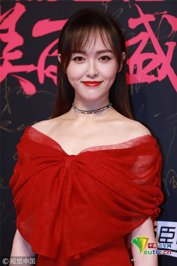 唐嫣紅色紗裙知性溫婉 胸前蝴蝶結點 ...