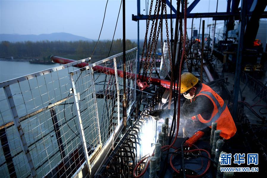 11月3日,工人在進(jìn)行大橋合龍收尾工作。 新華社記者 郭程 攝
