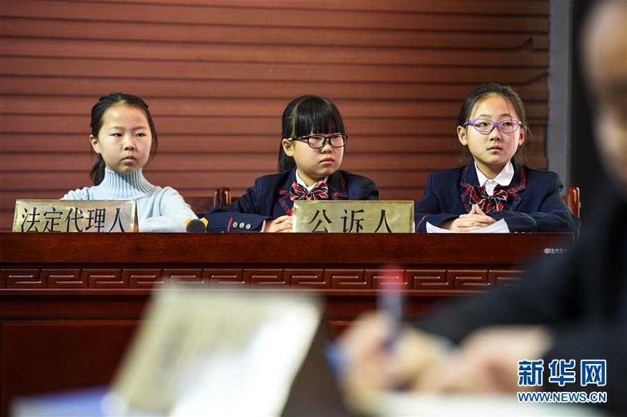 12月3日,銀川市實驗小學(xué)的學(xué)生在憲法日主題活動中體驗?zāi)M法庭。國家憲法日到來之際,各地學(xué)校紛紛舉辦主題宣講活動,對學(xué)生開展法治教育,幫助孩子們了解憲法知識。新華社發(fā)(馮開華 攝)