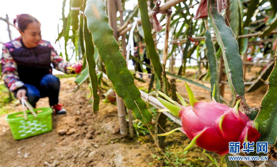 12月3日,一名北京游客在大廠回族自治縣一家農業(yè)園采摘火龍果。