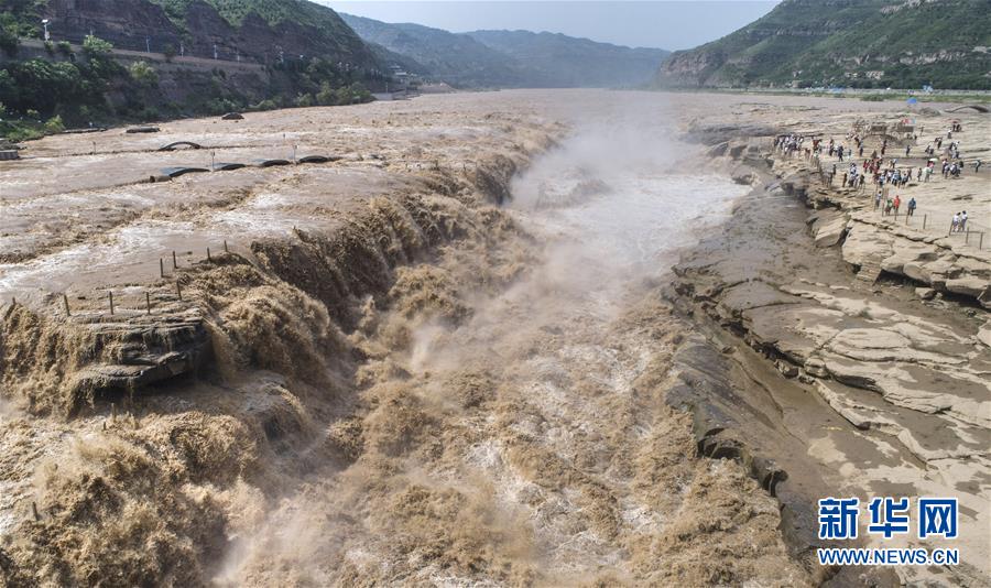 這是7月19日無人機拍攝的黃河壺口瀑布群。 新華社記者 陶明攝