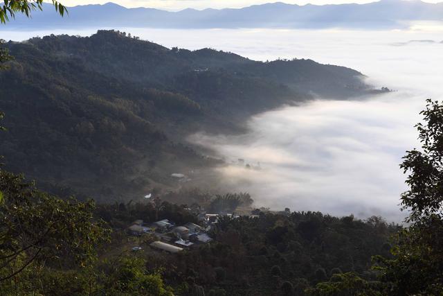 12月5日,云南省普洱市瀾滄拉祜族自治縣景邁山云霧繚繞,蔚為壯觀(無人機拍攝)。 新華社記者楊宗友 攝影報道