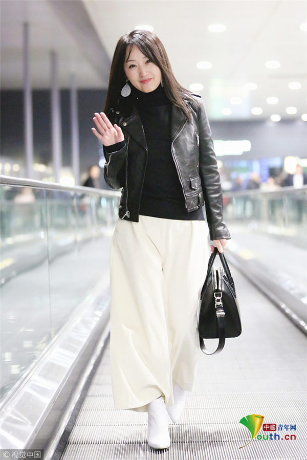 12月9日,上海,楊鈺瑩現(xiàn)身上海虹橋機(jī)場(chǎng),她身著黑色皮衣的她搭配白色直筒褲,手提大牌包優(yōu)雅知性,長(zhǎng)發(fā)披肩溫柔甜美似少女,見跟拍主動(dòng)揮手示好,保養(yǎng)得當(dāng)?shù)乃笮阊┌准∧w,不顯年紀(jì)!