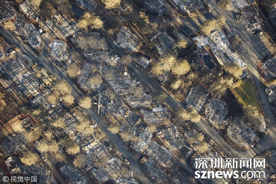 天堂變“地獄” 航拍加州山火肆虐社區(qū)似墓地