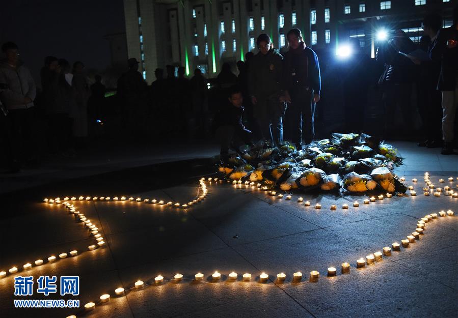 12月12日,學(xué)生在“燭光祭”活動現(xiàn)場獻(xiàn)花。 當(dāng)晚,南京東南大學(xué)學(xué)生在校園舉行“燭光祭”活動,悼念南京大屠殺遇難同胞。學(xué)生們點(diǎn)燃白燭,獻(xiàn)花默哀,表達(dá)哀思。 新華社記者 孫參 攝
