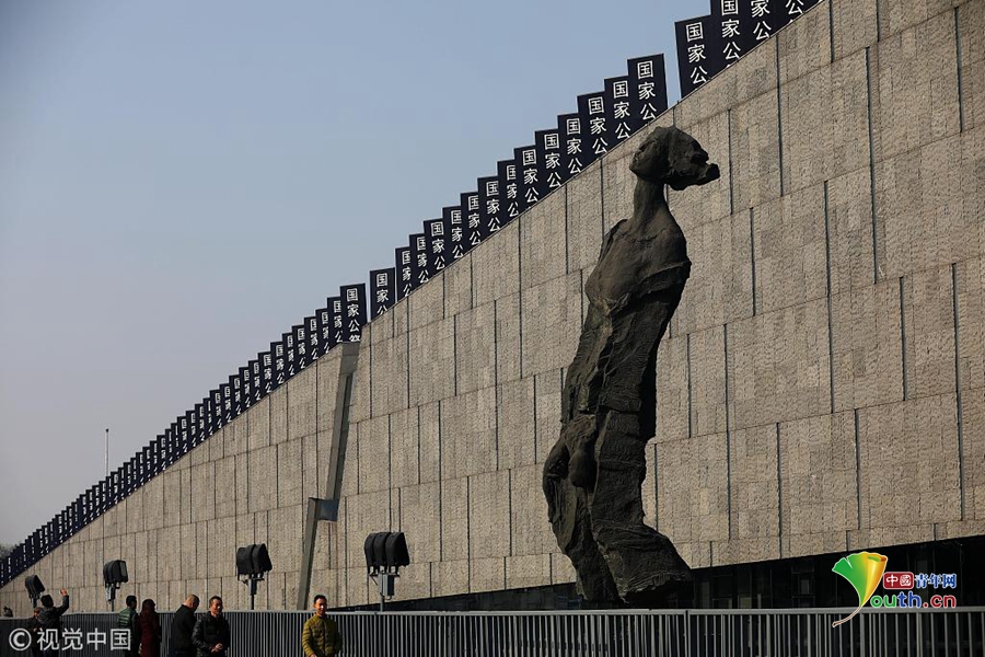2018年12月12日,民眾在侵華日軍南京大屠殺遇難同胞紀(jì)念館外參觀。12月13日,南京大屠殺死難者國家公祭儀式將在侵華日軍南京大屠殺遇難同胞紀(jì)念館舉行。圖片作者:泱波