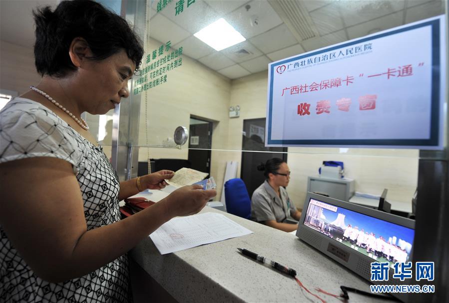 在廣西壯族自治區(qū)人民醫(yī)院,從北海到南寧異地就醫(yī)的鄭曉榮持社會保障卡在結算醫(yī)藥費(2015年6月30日攝)。 歷史進步的背后,必有堅強領導力量的引領。 “堅持黨的領導,全面從嚴治黨,是改革開放取得成功的關鍵和根本?!绷暯娇倳浛偨Y改革開放40年歷史和實踐作出這一重要論斷。 歷史關頭,中國共產(chǎn)黨的關鍵抉擇,改變了當代中國的命運; 宏偉征程,中國共產(chǎn)黨帶領億萬人民在改革開放實踐中,實現(xiàn)歷史性跨越; 面向未來,中國共產(chǎn)黨肩負實現(xiàn)中華民族偉大復興的歷史使命,把改革開放繼續(xù)推向前進。 新華社記者李斌攝