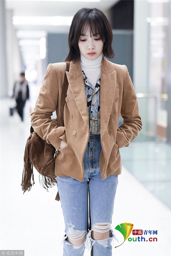 2018年12月16日,宋茜從上海機場飛往北京機場。她身穿短款薄外套,搭配破洞牛仔褲,要風(fēng)度不要溫度,一路低頭前行悶悶不樂似遇愁心事,到了北京之后她又裹起了厚圍巾,但依舊悶悶不樂。