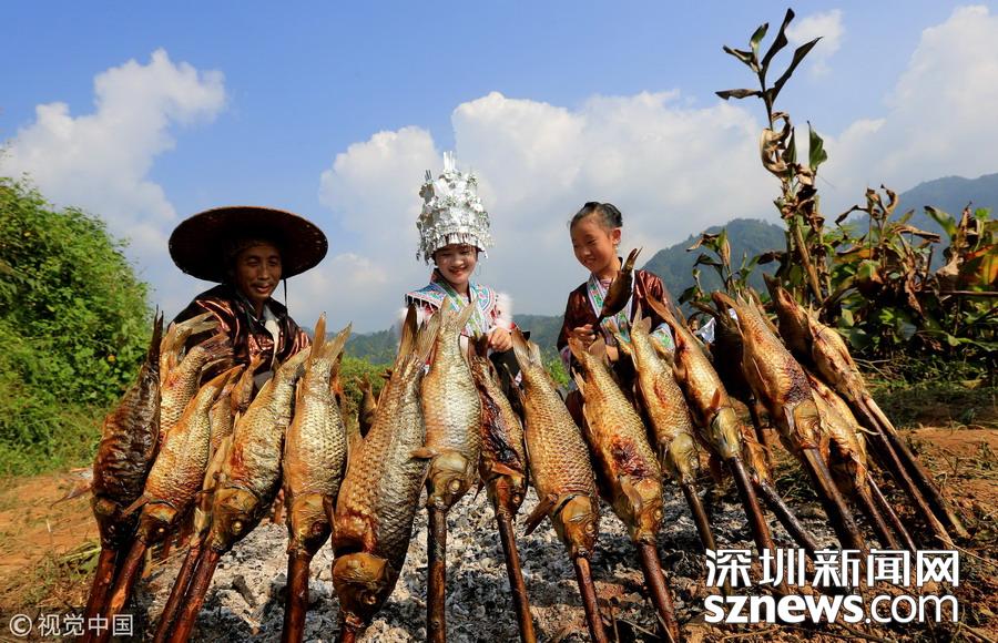 深圳新聞網(wǎng)訊 2018年9月15日,廣西柳州市融水苗族自治縣喜迎中國(guó)首屆“農(nóng)民豐收節(jié)”——2018金秋燒魚(yú)季啟動(dòng)儀式在桿洞鄉(xiāng)花孖苗寨舉行,數(shù)百名苗族群眾和游人共同開(kāi)展了水田拔河、田間捉魚(yú)、傳統(tǒng)打谷和燒魚(yú)等活動(dòng),慶祝豐收。
