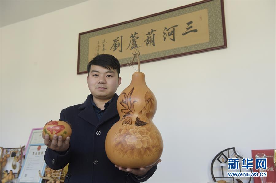 2014年,劉征從北京工商大學(xué)畢業(yè)后,曾從事過(guò)一段時(shí)間旅游產(chǎn)業(yè)方面的工作。2015年他回鄉(xiāng)創(chuàng)業(yè),致力于葫蘆烙畫創(chuàng)作和葫蘆衍生品的開(kāi)發(fā)。如今,劉征不僅注冊(cè)了自己的葫蘆衍生品商標(biāo),還和同學(xué)組建團(tuán)隊(duì)共同創(chuàng)業(yè),業(yè)務(wù)內(nèi)容涵蓋從葫蘆種植、加工到銷售的全流程,著力打造個(gè)性化訂制等特色產(chǎn)品。目前,劉征和他的團(tuán)隊(duì)已銷售葫蘆創(chuàng)意產(chǎn)品超過(guò)1萬(wàn)件,客戶超過(guò)1000人,部分創(chuàng)意產(chǎn)品還遠(yuǎn)銷到海外市場(chǎng)。