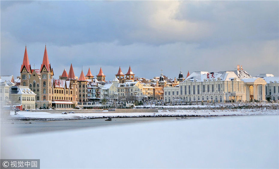 2018年12月7日,山東煙臺,雪后的海濱景色。當日煙臺迎來今冬首場降雪,海濱建筑在大雪的裝點下,形成海濱城市獨有的美麗雪景。地處膠東半島的煙臺,冬季降雪量遠高于地理位置相近的其他地區(qū),形成了獨特的海濱雪城,是中國著名的“雪窩”。唐克/視覺中國