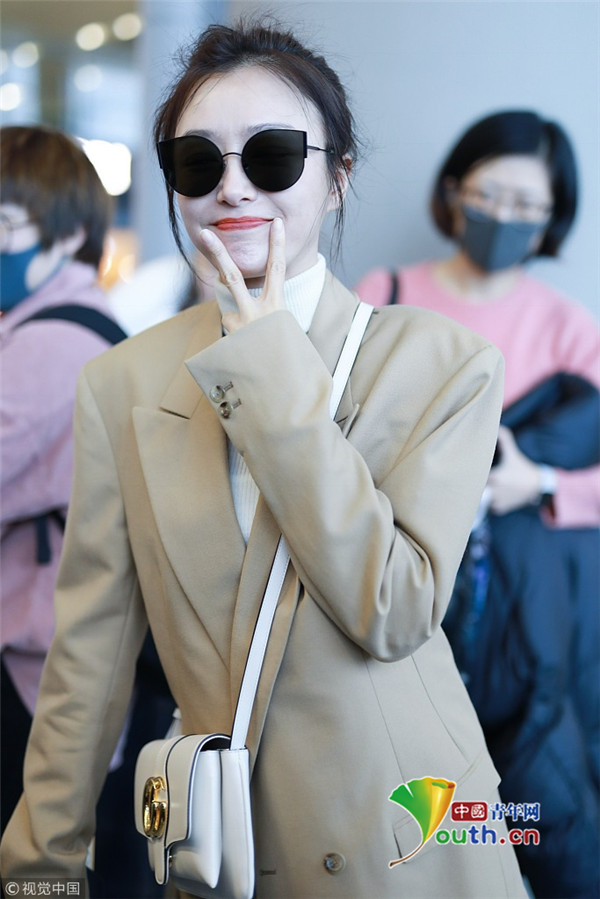 2018年12月11日,上海,秦嵐現(xiàn)身機(jī)場(chǎng)。她穿淺西裝配高領(lǐng)毛衣溫暖又時(shí)尚,梳丸子頭清新減齡,機(jī)場(chǎng)獲粉絲送告白信,嬌羞嘟嘴賣萌少女范十足。