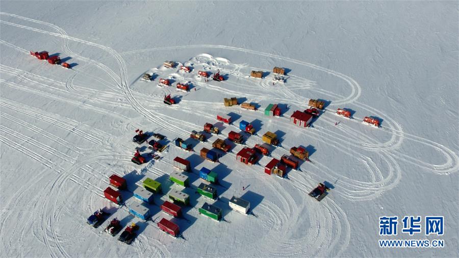 12月19日,中國第35次南極科考隊泰山隊和昆侖隊向南極內陸腹地行進(無人機拍攝)。