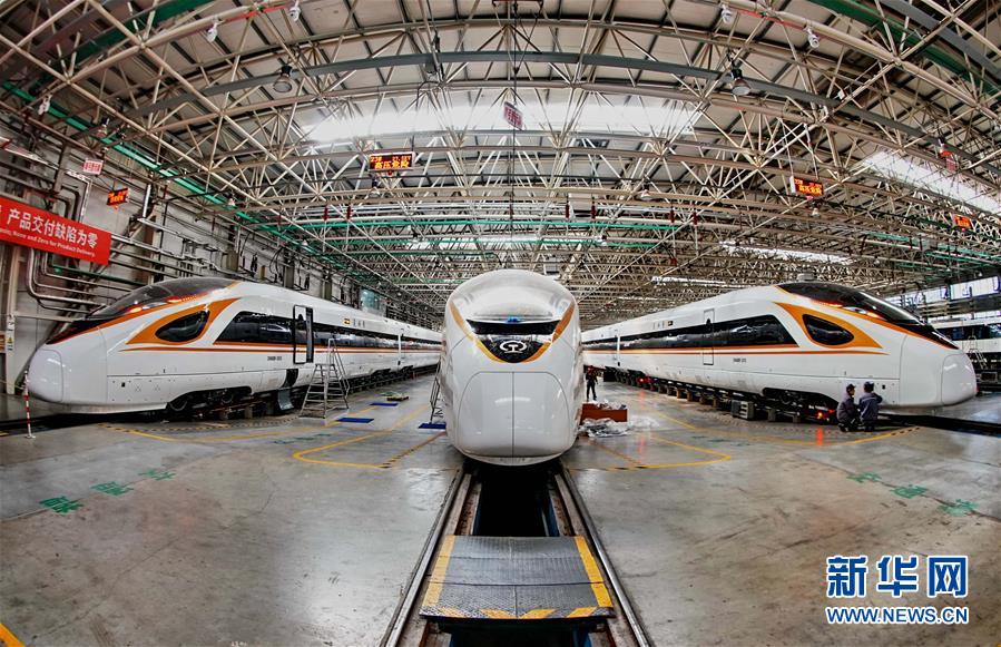 中車唐山機(jī)車車輛有限公司的工人在復(fù)興號動車組生產(chǎn)線上工作(3月23日攝)。 新華社記者楊世堯攝