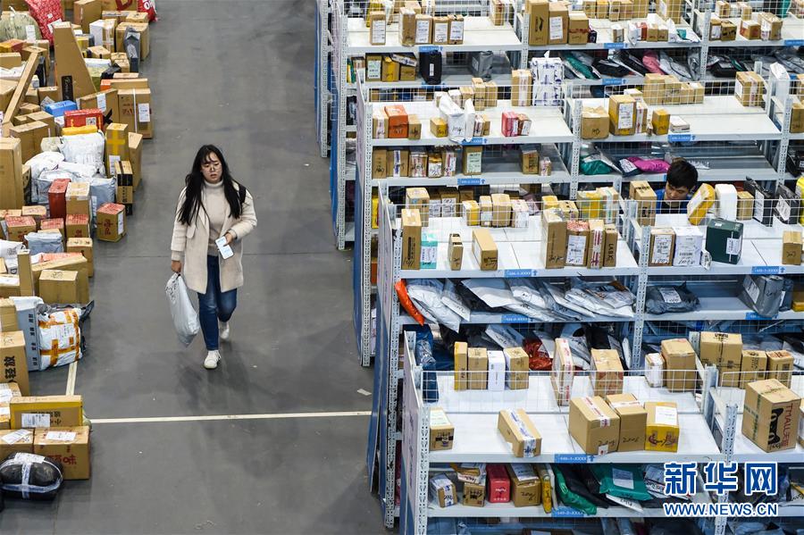 南京航空航天大學(xué)學(xué)生在校園臨時快遞取件點(diǎn)領(lǐng)取快遞(11月13日攝)。 新華社記者 李博 攝
